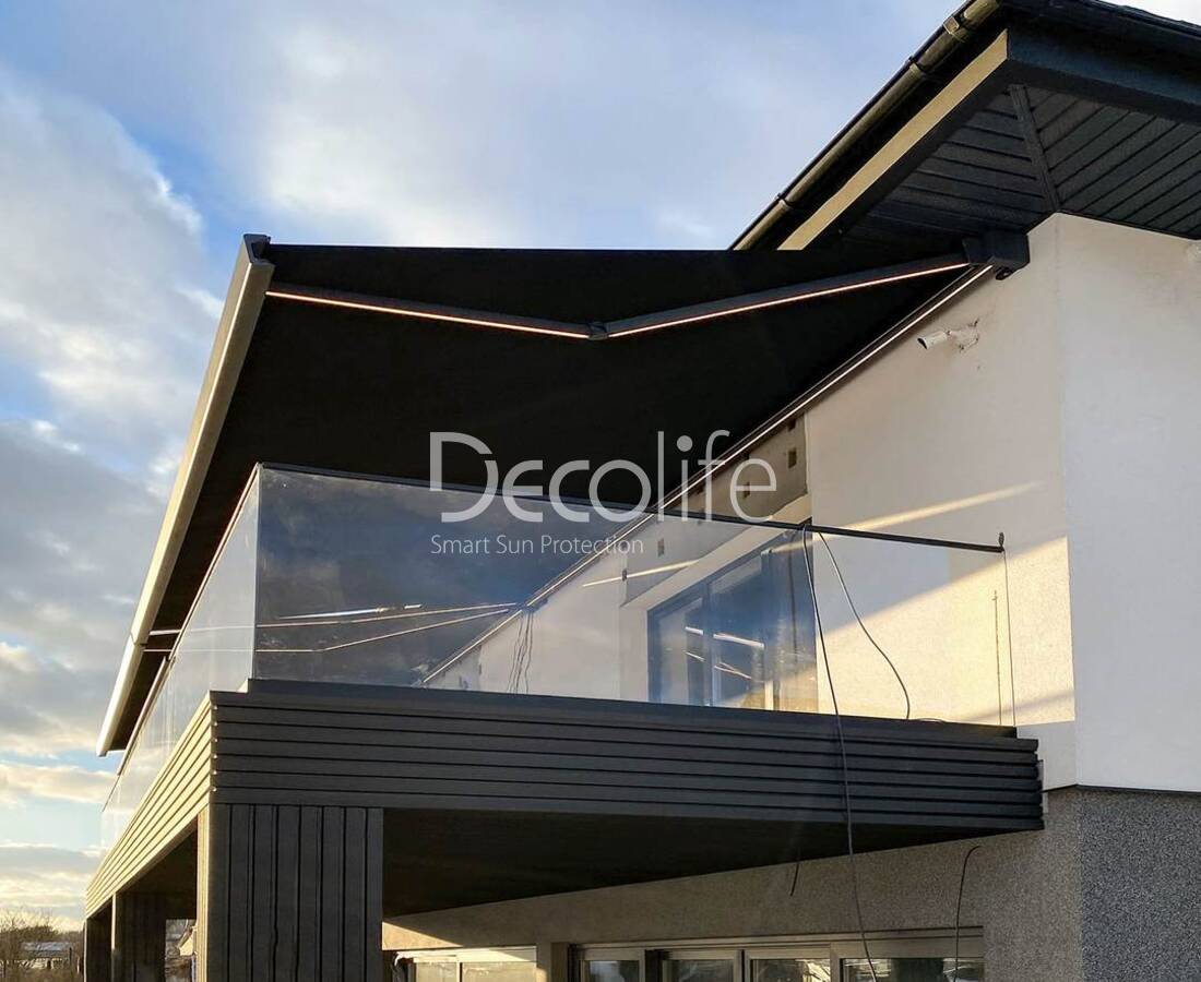 Маркиза кассетная Decolife G600 с подсветкой в локтях и коробе - Минск