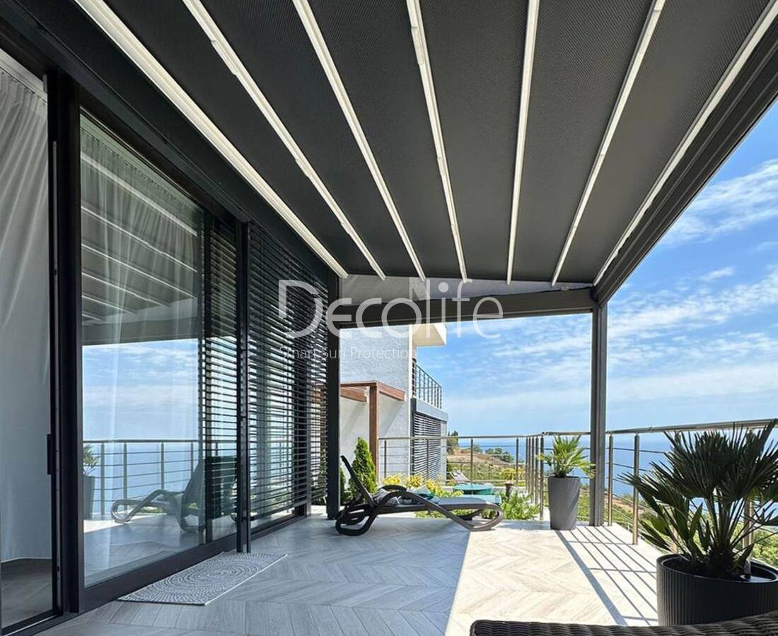 Пергола тентовая Decolife Project Light, реализовано нашим партнером ООО "Европейские Солнцезащитные Системы" - г. Зеленоградск