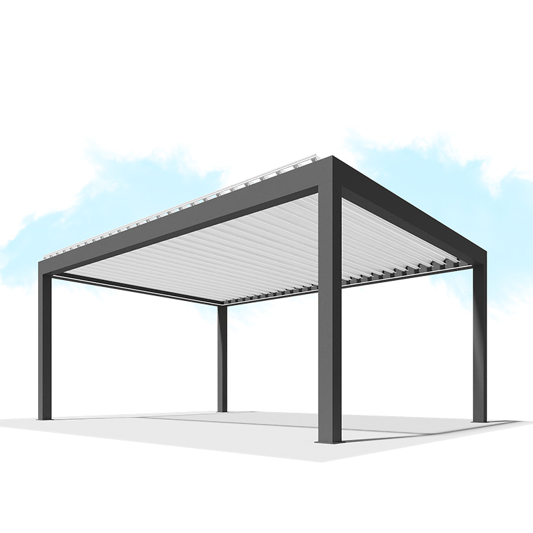 Элементы крыши в перголах B500 и B400 поворачиваются до положения, выбранного пользователем. Это дает возможность создать открытое пространство с неограниченным поступлением естественного света или организовать уютную обстановку, когда идет дождь. Ламели способны прилегать друг к другу таким образом, чтобы крыша становилась непреодолимым барьером и для влаги во время осадков, и для солнца в жаркие дни.